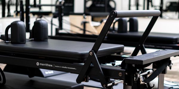 Our studio is outfitted with top-tier Merrithew equipment: three V2 Max+ Reformers with mat converters and vertical frames (offering Cadillac-style versatility and a traveling pulley system), split-pedal stability chairs with handles, Cardio Tramps, rotational discs, arc barrels, and a full range of props to scale movements for any fitness level or add intensity.